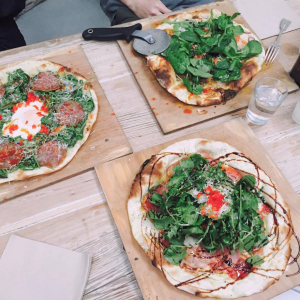 2. STORY DELY ( 123 Bethnal Green Rd, London ) Avendo radici sud italiane, mangiare una pizza a Londra per i miei parenti sarebbe reato, lo so! Ma amante dei bei posti più che della buona cucina, mi sono fatta forza e sono andata.  Le nostre pizze, sappiamo tutti che sono imbattibili ma ammetto che quelle di Story Degli sono molto originali e non sono nemmeno parenti delle pizze italiane ma sono originali e gustose.Vi offriranno pizze nel quale non viene usato il lievito. Tutti i prodotti che troverete sulle pizze sono tutti biologici, ma qui vince la location, anche se effettivamente per chi non viene indirizzato è molto difficile scovarlo. Non c’è nessun insegna che vi indichi il posto se non un foglio bianco all’angolo della strada con scritto “ PIZZA”. Story Deli è un posto assolutamente romantico, intimo e rustico.Ci sono grandi tavoli in legno da condividere anche con gente che non si trova li con voi. Il posto vi induce a un relax totale, molto accogliente. L’interno è tutto bianco e mimal, insomma un posto perfetto per godervi la vostra “strana” pizza. Le posate non vengono messe per ogni persona ma al centro del tavolo avrete tutte le posate in un unico  contenitore, a lato sale e olio per condire il tutto a vostro piacimento e anche la rotella per tagliarvi la pizza.