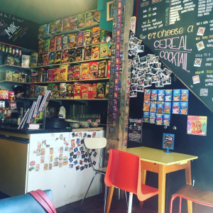 3. Come ritornare bambina da “CEREAL KILLER CAFÈ”Anche voi come me quando eravate piccoli amavate qualsiasi tipo di cereali da immergere nell’enorme tazza di latte?Allora non potete di certo perdervi l’unico posto al mondo, credo, dove tornare bambini per almeno 1 ora è possibile. La scelta del cereale perfetto è difficilissima, la varietà è molto ampia. Mi sono infatti trovata in difficoltà e alla fine ho ordinato a caso tramite il menù che è formulato con lettere magnetiche su lavagnetta. La location è delle migliori, muri pieni e stracolmi di scatole di cereali, oltre ad avere una quantità infinita di pupazzi, gli stessi pupazzi che trovavo come sorpresa nelle scatole dei cereali da piccola. Poltrone o su letti-divano con anche lenzuoli 90s. L’atmosfera è puramente vintage anni 80 e 90.Non riesco a consigliarvi una cosa ben precisa, perché ogni volta che torno  a Londra, il passaggio in quel mondo fatto di latte e cereali é d’obbligo. Tutto ció che si trova nel menù è da provare!